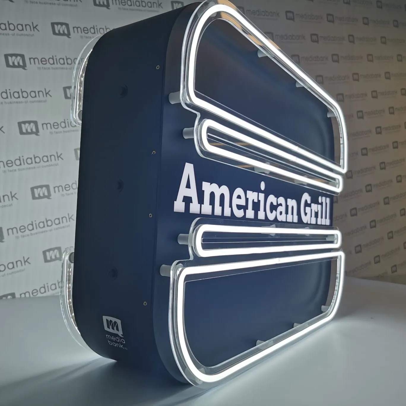 Structură plată, de obicei dreptunghiulară, iluminată uniform din interior, ideală pentru afișarea unui logo sau mesaj pe suprafețe mari